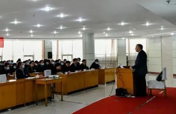 10月16日,泰山钢铁集团中高层干部营销管理研修在经贸楼会议室举行,集团党委书记、董事长、总裁王永胜致开场词。集团党委成员、总监邵书东,总监郑红君、李海洋,总经理助理王晓林、魏述亮参加活动。
