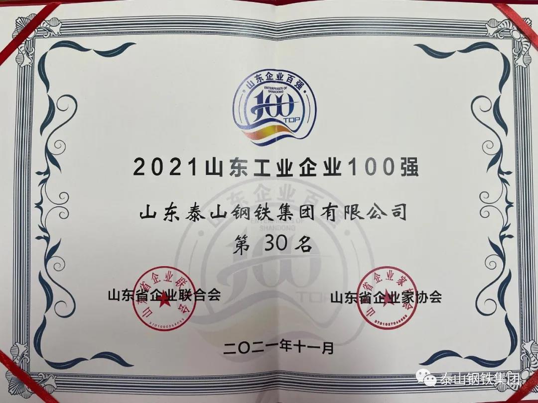 日前,山东省企业联合会、山东省企业家协会联合发布“2021山东企业100强、工业企业100强和服务业企业50强企业名单”。泰山钢铁集团入围“2021山东企业100强”,位列第36位;上榜“山东省工业企业100强”,位列第30位。
