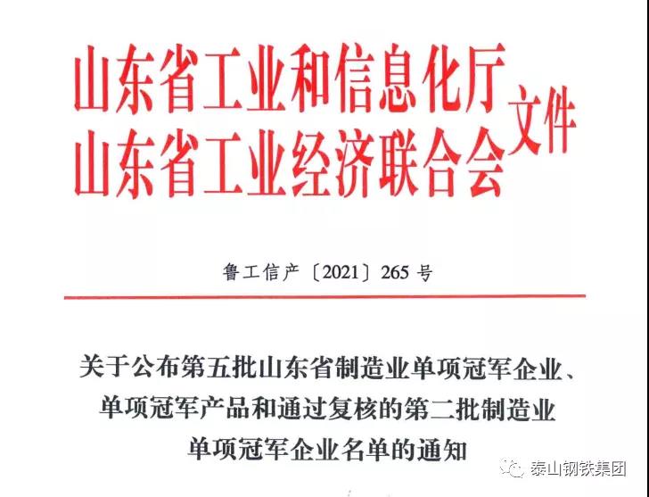 近日,大众日报《经济导报》以“‘单项冠军’鲁企的夺冠密码”为题推广了我省单项冠军企业坚定不移走“专精优特”之路的典型经验,其中,泰山钢铁集团作为代表企业之一报道了做精做细铬系不锈钢的故事。
