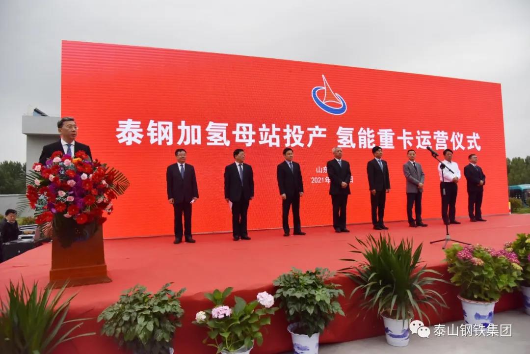 5月23日,泰山钢铁集团举行加氢母站、氢能重卡运营启动仪式。泰钢加氢母站是泰山钢铁集团在当前“碳达峰、碳中和”时代背景下,建设的山东省氢能产业先行先试项目,是省内首个加氢母站,具有可推广、可复制的“零碳”特点。项目应用了先进成熟的定向去杂工艺技术,配备国内单体最大隔膜压缩机、高品质氢气检测实验室,集制备、纯化、检测、充装、加注和管道输送于一体,可覆盖周边150公里范围氢能汽车用氢需要,为后续开发用氢场景,推动山东区域氢能与燃料电池汽车协同发展,具有重要的现实意义。