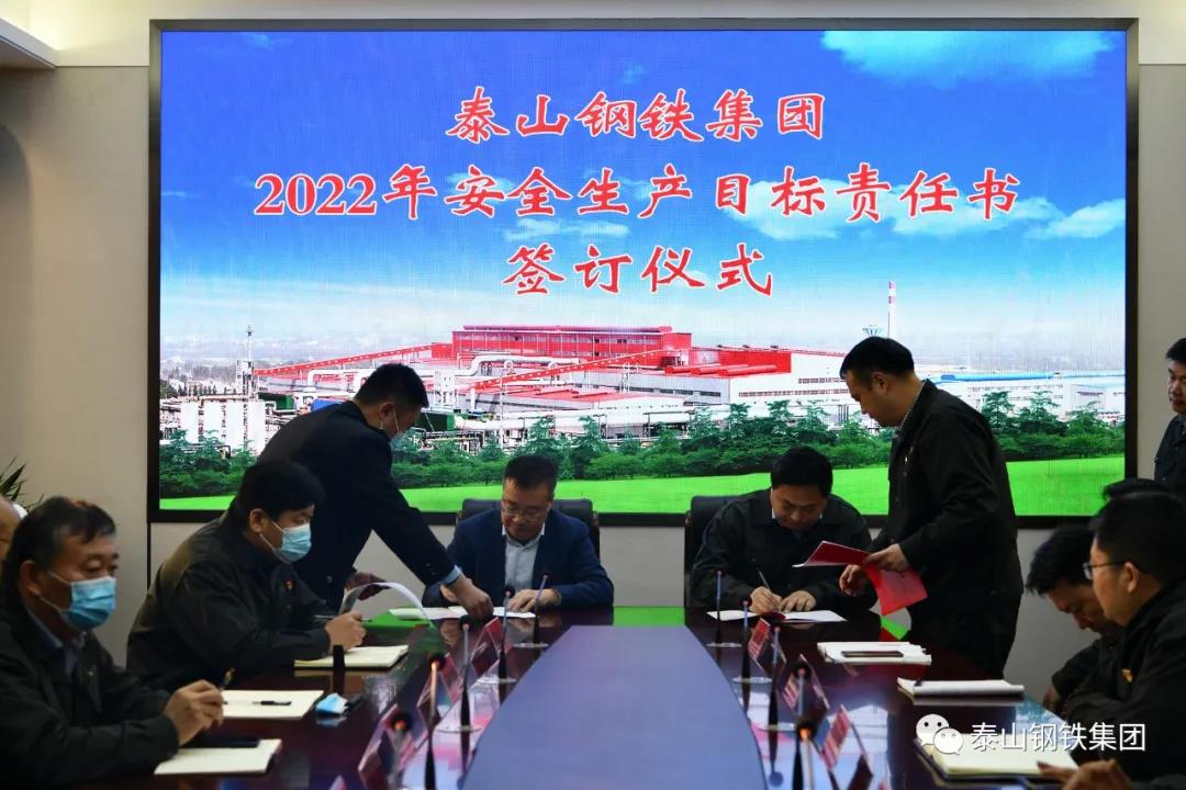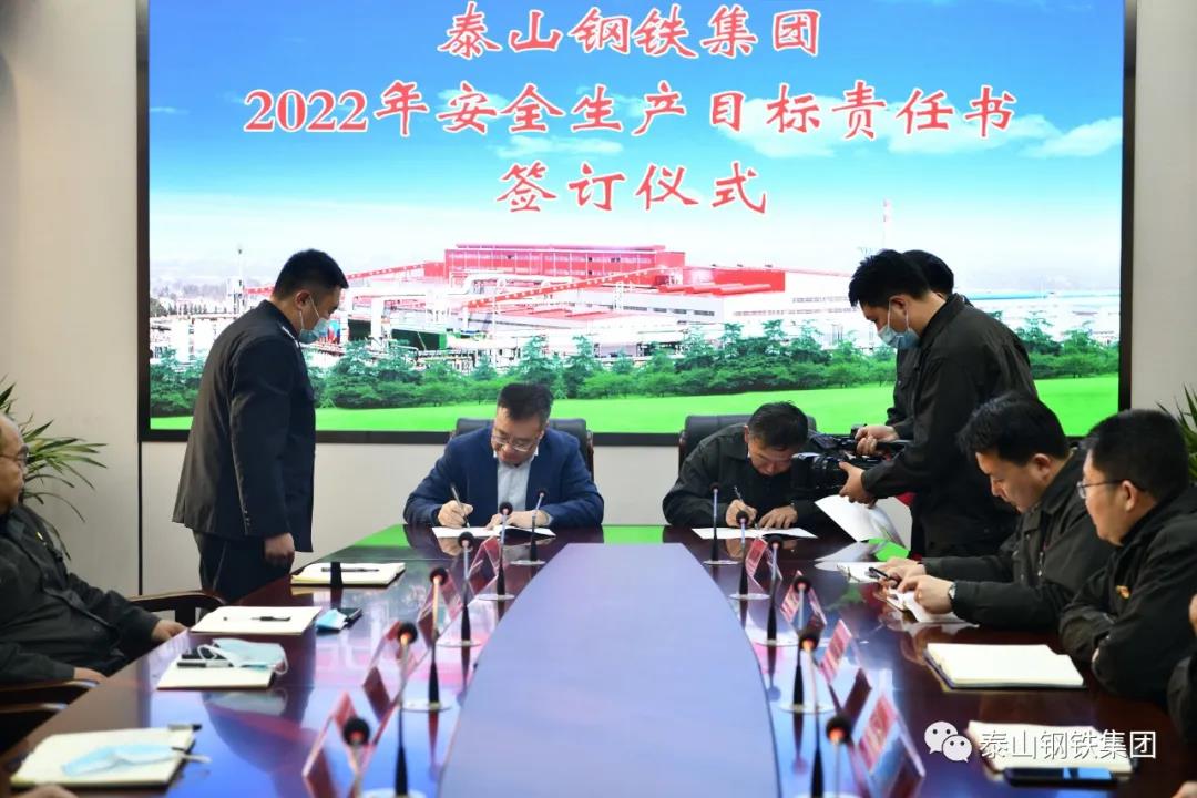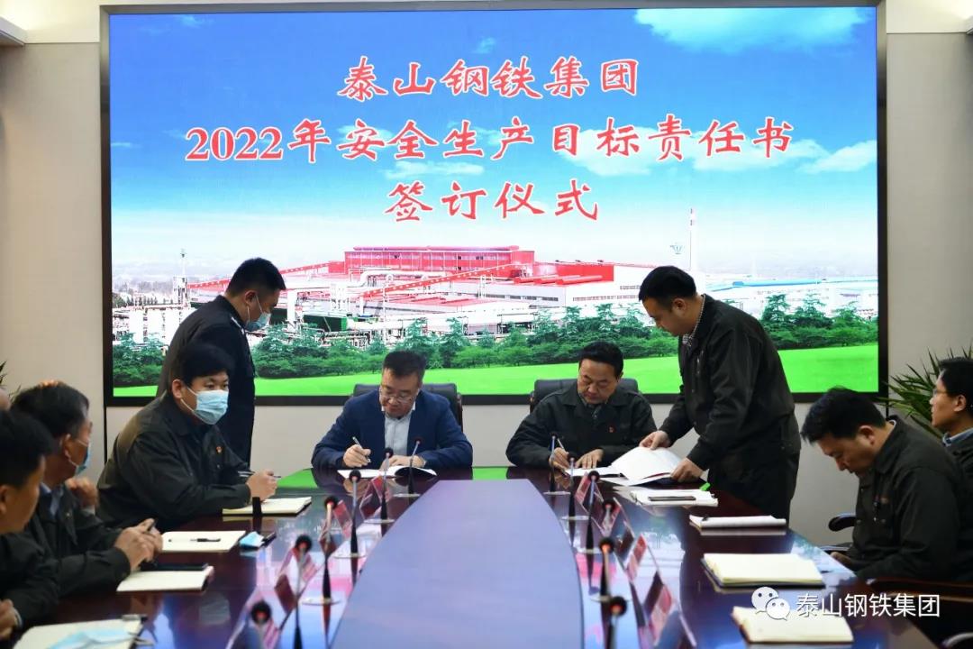 安全生产爱游戏线上官网(集团)官方网站重于泰山。进入2022年第一个工作日,泰山钢铁集团在办公楼会议室召开了2022年安全生产目标爱游戏线上官网(集团)官方网站书签订仪式,集团党委书记、董事长、总裁王永胜出席会议,与各事业部、各分厂签订了2022年度安全生产目标爱游戏线上官网(集团)官方网站书、社会治安综合治理目标爱游戏线上官网(集团)官方网站书、消防安全目标爱游戏线上官网(集团)官方网站书,对2022年安全工作提出了要求,给大家上了一堂生动的“2022年安全生产第一课”。