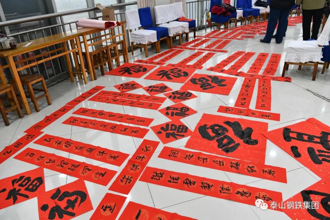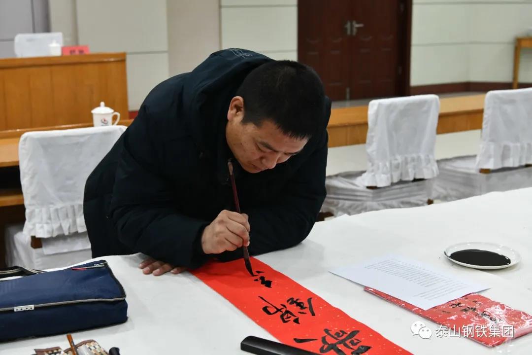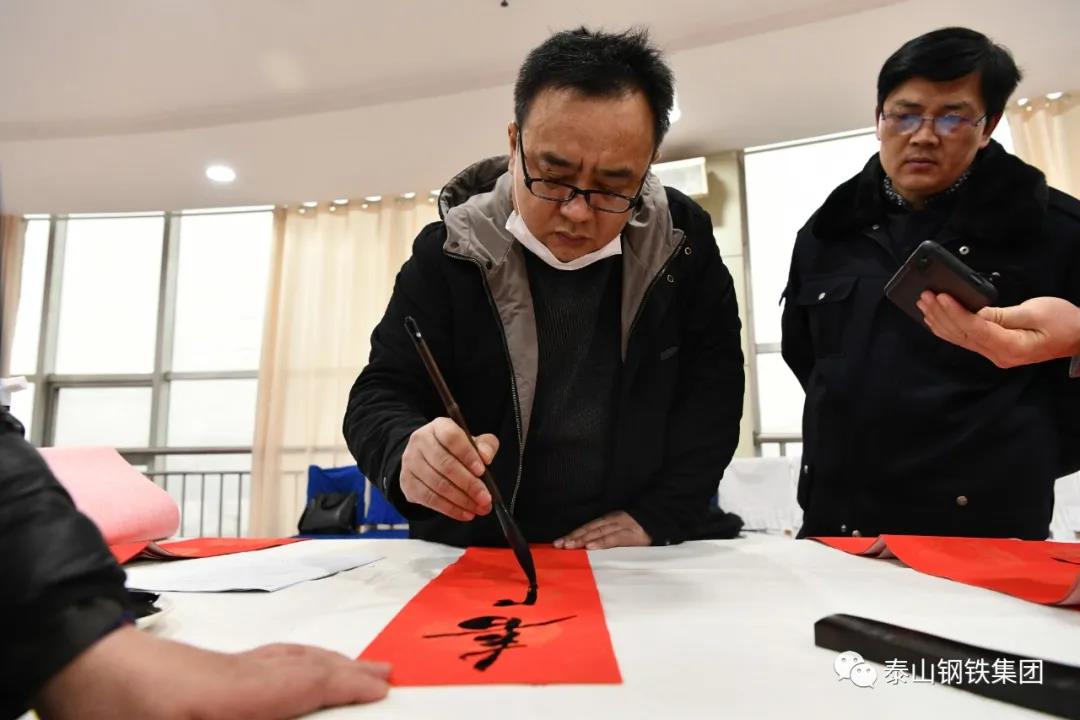 为认真贯彻党的十九届六中全会精神,弘扬中华优秀传统文化,营造欢乐喜庆祥和的节日氛围,1月12日上午,由区文联(区社科联)、泰钢文联联合主办,区书法家协会、泰钢书法协会承办的“春‘莱’福至——莱芜区文联送春联送福字走进泰山钢铁暨泰钢文联‘文艺筑梦’志愿服务项目”在集团公司经贸楼三楼会议室举行。