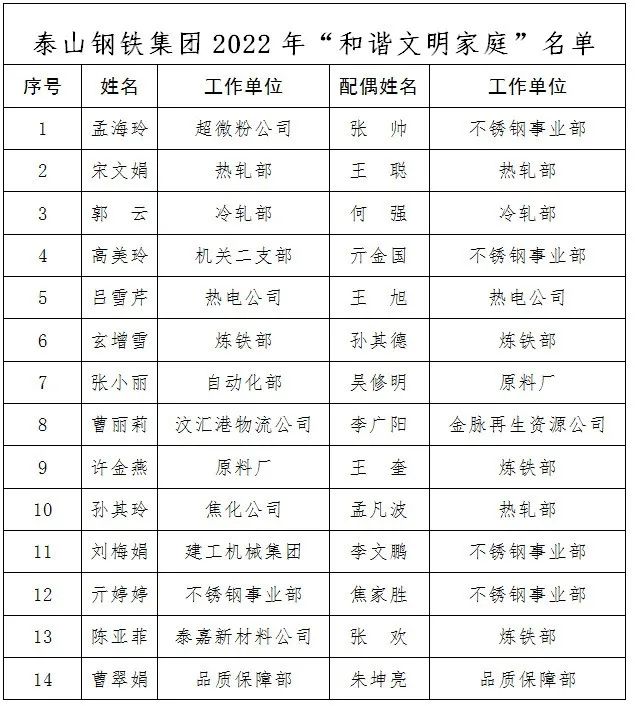 “三八”妇女节前夕,泰山钢铁集团工会在全公司持续开展了“和谐文明家庭”评选活动。经过基层推荐、调查了解、群众评议程序,14户职工家庭光荣入选。近期,工会将继续上门为他们挂牌并颁发荣誉证书,鼓励他们热爱泰钢、立足本职,勇于担当,发扬四个作风,践行四个保障,树立强烈的事业心和爱游戏线上官网(集团)官方网站感,以“学习、实践、创新、提高”为导向,在泰钢大舞台上实现更好的成长。