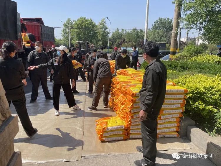 5月4日,在泰山钢铁集团热轧部、冷轧部、不锈钢事业部、冶金机械厂等单位门口,停下了一辆辆满载着龙虾香稻米的重卡汽车,身穿工装、戴着口罩的干部职工们喜气洋洋的有序搬下一袋袋包装精美的稻米,现场洋溢着温暖愉悦的气息。
