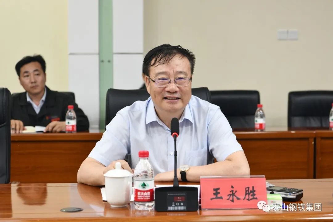 为突出宣传我省贯彻落实习近平总书记对山东工作重要指示要求、奋力“走在前、开新局”的鲜活实践,突出宣传我省推进“三个十大”行动落地落实的成果亮点,经省委批准,省委宣传部组织中央驻鲁媒体、省直主要新闻媒体的记者们组成采访团,开展了“走在前、开新局”行进式主题采访活动。6月27日,山东省委宣传部新闻一处三级主任科员张中龙带队“走在前、开新局”行进式主题采访团的20余名记者走进泰山钢铁集团,深入采访集团公司在高端制造、创新研发等方面取得的成果亮点。在经贸楼二楼会议室举行的座谈交流会上,集团党委书记、董事长王永胜介绍了集团相关情况。