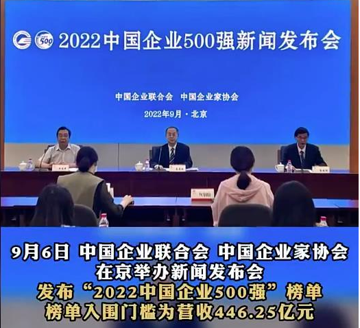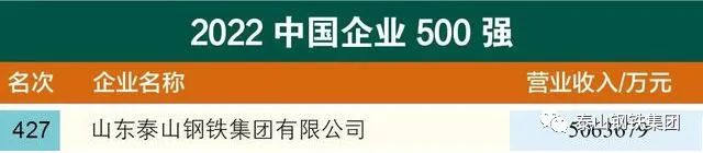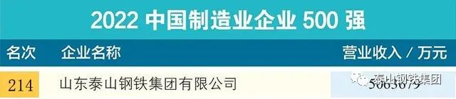 9月6日,中国企业联合会、中国企业家协会在北京举办新闻发布会,发布了“2022中国企业500强”“2022中国制造业企业500强”,泰山钢铁集团再次上榜,分别位居第427位、第214位。
