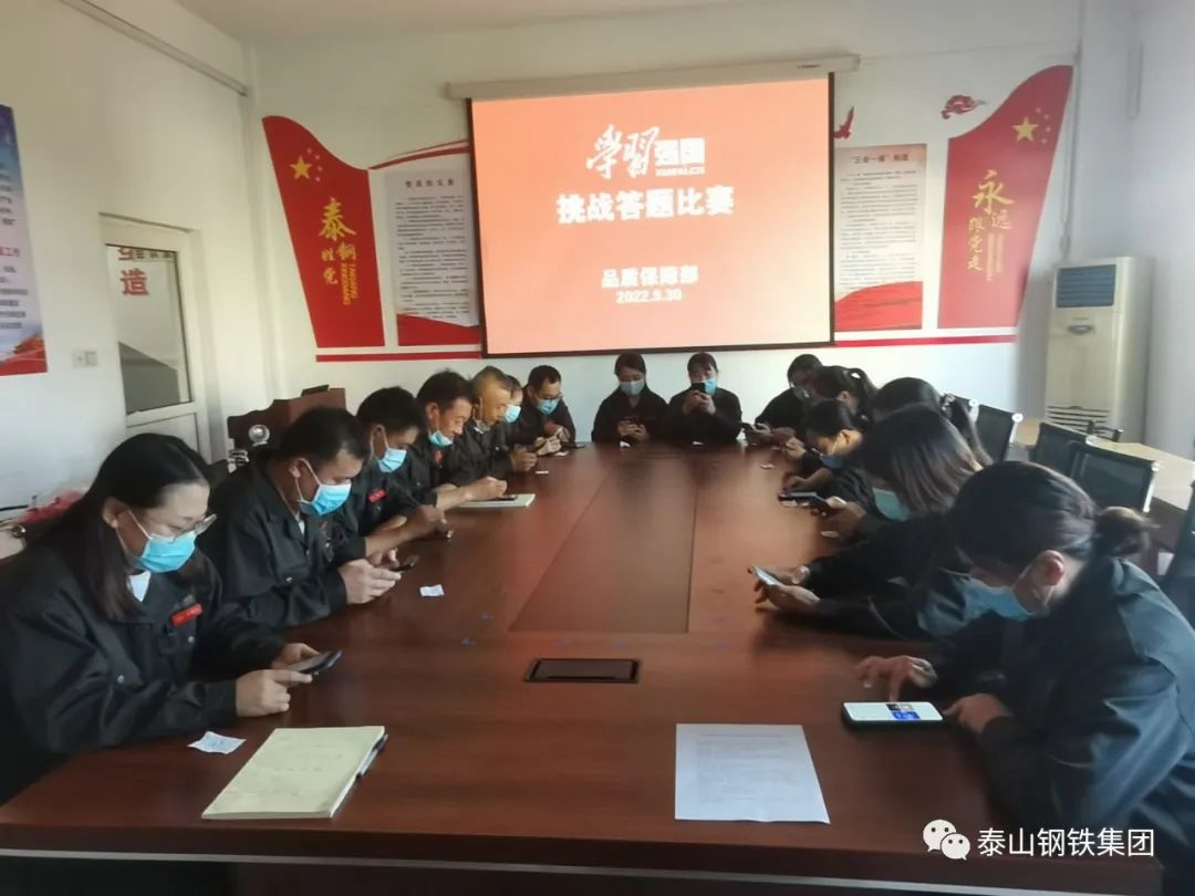 品质保障部组织开展了“庆国庆·强国有我”挑战答题竞赛活动,充分调动了广大党员干部参与“学习强国”学习的积极性,提升了大家的学习能力,进一步激发了大家读书学习的兴趣与热情。