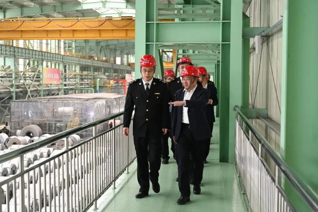 4月14日,济南海关关长、党委书记刘卫带队到泰山钢铁集团调研指导工作。集团董事长、党委书记王永胜陪同刘卫一行参观了泰钢精神主题展览馆、泰嘉不锈钢冷轧板材深加工项目,介绍了集团相关情况。