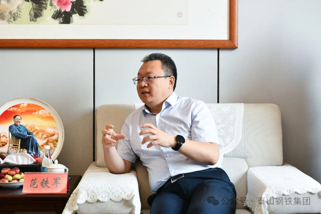 5月30日,中国冶金报社党委书记、社长范铁军到泰山钢铁集团调研指导。集团董事长、党委书记王永胜热情接待了范铁军一行,并与客人围绕宏观经济形势、行业发展趋势、企业管理、产业政策、新质生产力等话题进行了深入、愉快地座谈与交流。