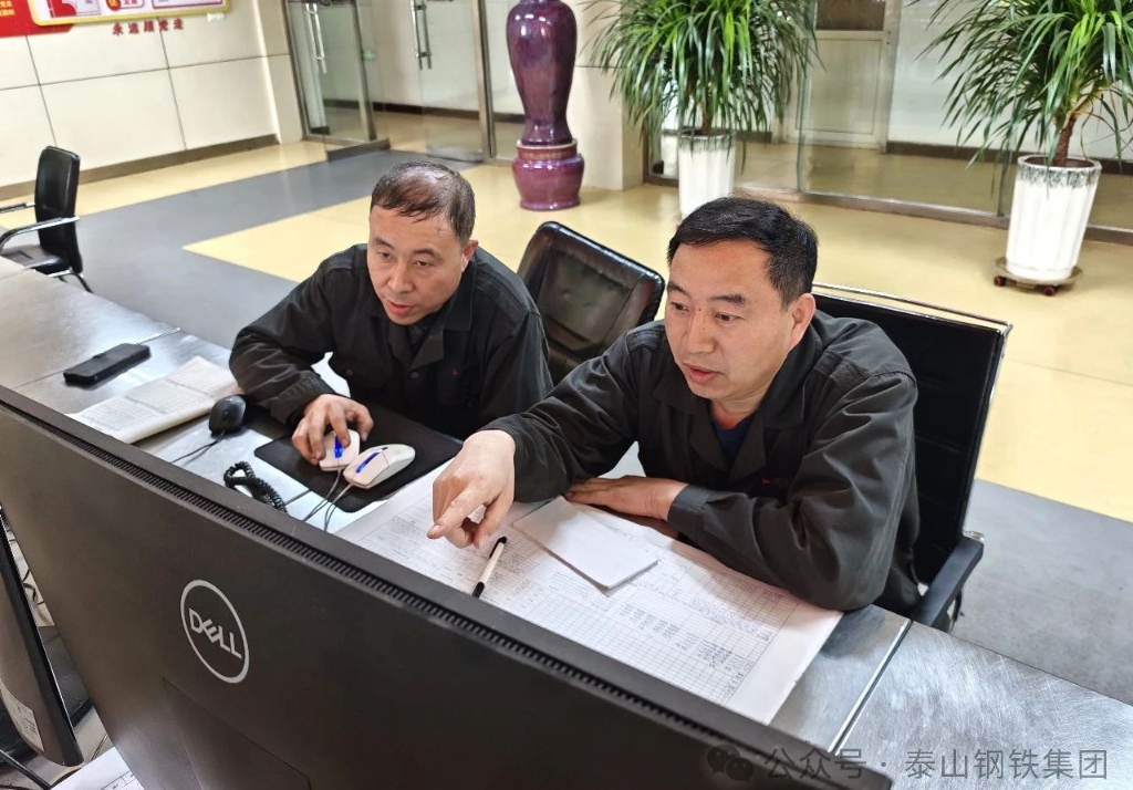 炼铁部炼铁厂2号高炉主控室内,炉内工长张小龙正与炉外工长张昆沟通高炉出铁和炉温变化情况。两人有条不紊地制定下一炉次开口时间,为炼出好铁水共同努力着。