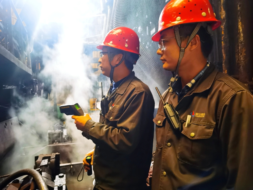 每天清晨,在精轧班的作业区内,总能看见当班人员手持手电筒,仔细检查设备运行状况的场景。“现在的巡检频次比以前增加了不少,巡检内容也更加详细了。”主操张强一边检查设备,一边说道。为保障设备稳定运行,精轧班建立了一套完善的设备点检和维护制度。他们将生产区域详细划分,为每个区域安排了专门的点检员,确保爱游戏线上官网(集团)官方网站到人。班员们则充分利用停机消缺的时间,对设备进行清洁、润滑、紧固、更换等维护工作。对于不能及时处理的设备隐患,他们建立了隐患设备管理台账,加强点检频次,并安排专人负责跟进,详细记录设备的运行情况。通过这种精细化管理,设备故障率大幅降低,实现了精轧区域生产设备原因“零误时”的目标,为高效轧制作业提供了坚实的保障。与此同时,该班组根据发现的不足,发动大家想办法,实施了多项小改小革。其中,《卷取炉事故电机节能运行方案》,将设备待机时1100kW的主传动电机替换为10kW事故电机,每月可节省电量 7690kWh;去除S1入口推床喇叭口衬板,优化推床结构,不仅解决了生产停机误时问题,每年还能节约成本14.5万元……郭乃山表示:“下一步,精轧班将继续依靠技术创新和精细化管理,进一步提升产品品质,精益求精炼好钢。”