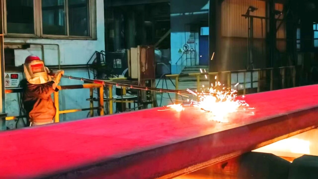 10月9日上午7时,连铸车间1号连铸机旁,一阵急促的脚步声响起。刚刚检查完火切区域的车间主任艾健,正快步走向值班室,与夜班班长们一起进行工作复盘。